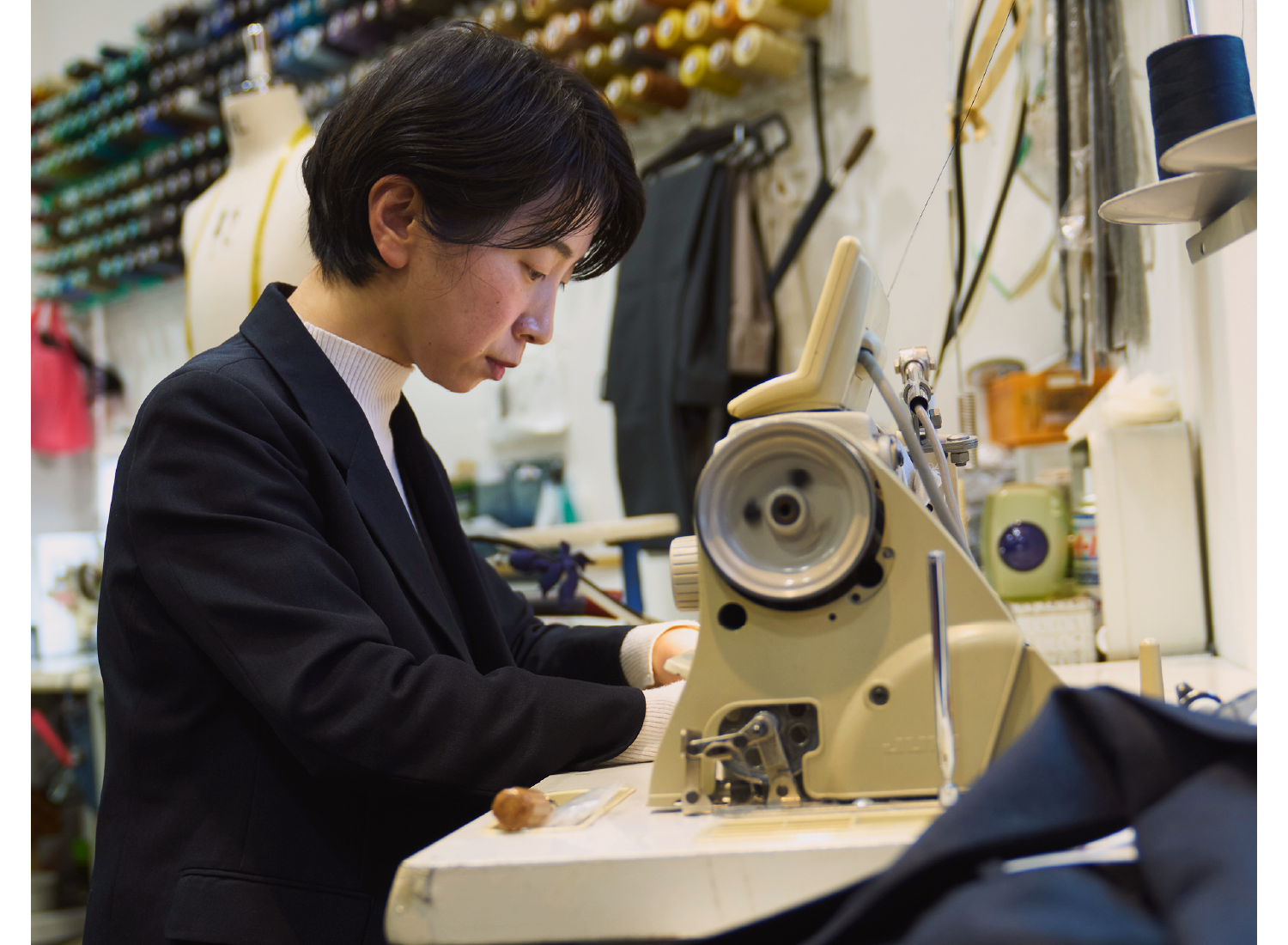 多くの方は、ご自身の正確なサイズを把握していません。それでも不思議と、その服を着た時の気持ちは覚えているもの。楽だった、落ち着かなかった、少し誇らしかった…。フィッターは、そうした曖昧な感覚を受け止めながら、心と体の両方にフィットするよう服に針を入れ、完成形をお客様とともに探っていくのです。