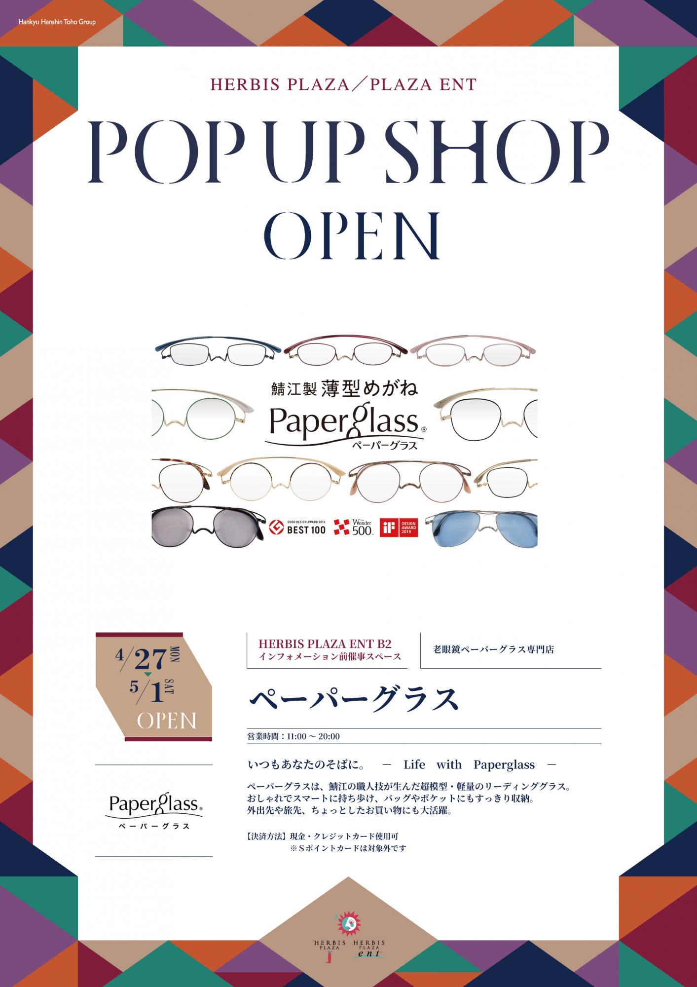 【POP UP SHOP】「ペーパーグラス」(4/27~5/1) 2026年04月27日(月)
